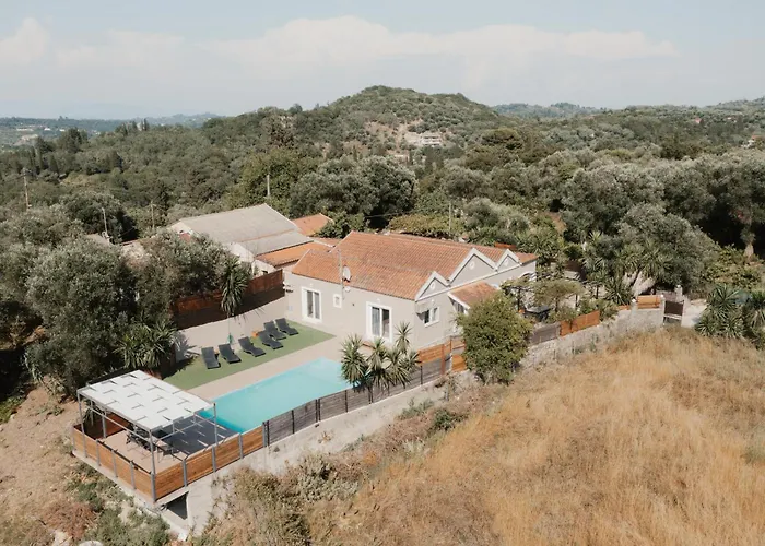 Willa obejmuje kuchnię wyposażoną w czajnik elektryczny, lodówkę i przybory kuchenne do przygotowywania posiłków. Odległość od Korfu lotniska wynosi około 15 km.